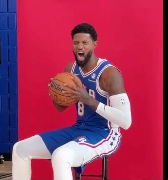 76人今天正式开启媒体日,球队几大核心系数回归接受采。乔治虽然不能参加明天首日的训练营,但是也回来拍照了。