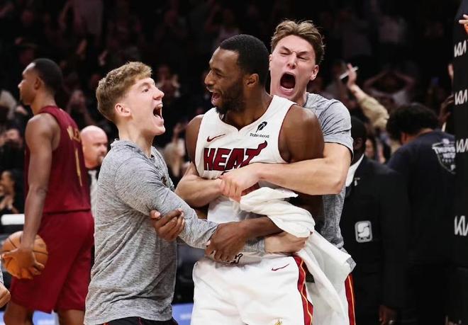 两队鏖战到加时,加时赛最后时刻,骑士落后3分,先是米切尔在底线来了一个漂移极限后仰三分绝平比赛,留给热火0.4秒;斯波主教练设计了一个巧妙的战术,假电梯门卷切篮下,骑士的防守禁区直接漏出一个大空位,嘴哥威金斯顺势空接起飞,扣篮绝杀比赛!这也是热火的经典战术了,用过好几次;23年季后赛首轮,热火黑八爆冷淘汰雄鹿,巴特勒有一次空接后仰绝杀,也是似曾相识。