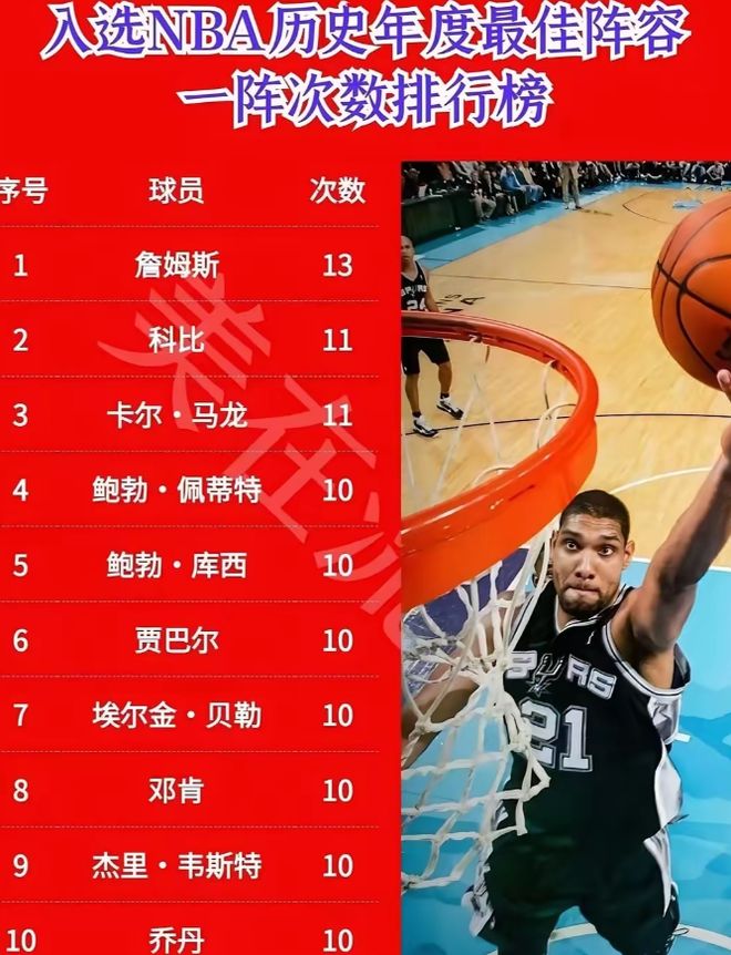 七、13次最佳一阵:历史第一的“巅峰持久度之王”