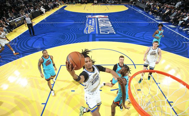 2025年2月,旧金山全明星周末,一位20岁的年轻人成为最大赢家。顶着高高发辫的斯蒂芬·卡斯尔接过新秀赛最有价值球员奖杯,素来平静的脸上闪过一丝笑容,他将奖杯高高举起,享受着全场的欢呼与掌声。