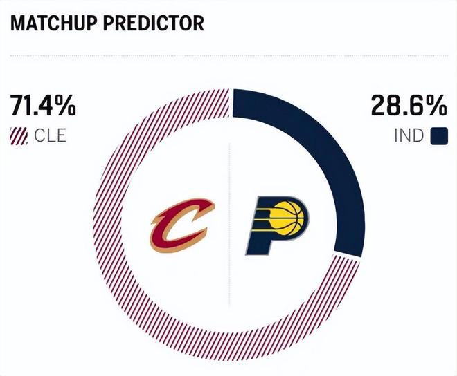 赛前,美媒ESPN对本场比赛进行了胜率预测,步行者胜率仅有28.6%,骑士队胜率则高达71.4%, 差距非常悬殊。