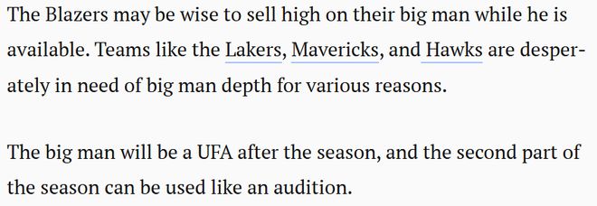 交易截止日后,开拓者的内线轮换阵容会如何调整,目前尚难定论。球队若想达成既定目标,势必需要做出一些阵容变动。