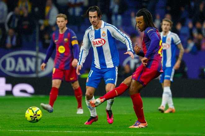 西班牙人一上来就猛攻,前三十分钟七次射门,巴萨防线差点没扛住,第三十七分钟霍安·加西亚飞身把对方近在咫尺的头球扑出去,诺坎普以外的球迷都喊了起来,巴萨门将也没掉链子,第六十