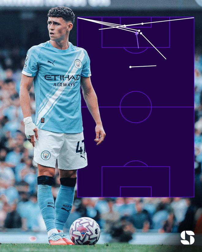 与那不勒斯一役创造8次机会,为福登曼城生涯单场最多