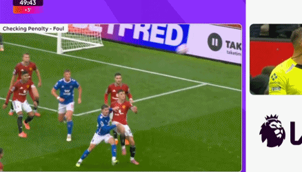 上半场补时第3分钟,塞斯科禁区内抬脚解围,结果踢到休姆,后者应声倒地,主裁判判罚点球。随后,视频助理裁判介入判罚,并且要求主裁判回看慢镜头。