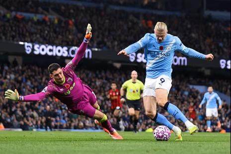 曼城迎战伯恩茅斯,搁过去难有喧嚣,通常没有涟漪。但要是留意到赛前的排名:伯恩茅斯居次席,曼城还在前四开外,你会不会高看这场英超两眼?结果还是老样子,曼城(貌似)轻松拿下3分,哈兰德循例梅开,但过程颇多值得咀嚼之处。甚至说这场比赛的质量是赛季迄今三甲也一点不夸张。曼城换了打法,换了阵型,换了阵容。伯恩茅斯重塑了后防,依然保持如此强劲的战斗力,传切跑动高效合理,赏心悦目。