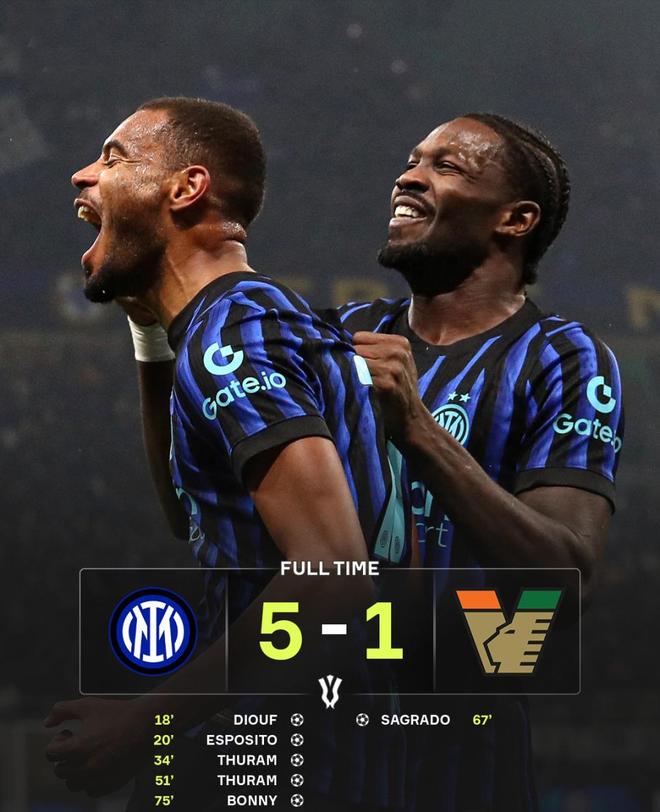 意大利这边,国米火力全开,5-1大胜威尼斯,轻松晋级意大利杯八强。小图拉姆用一场比赛完成了对前辈德约卡夫的超越,他已经为国米打进40球,成为队史第一法国射手。埃斯波西托的表现同样抢眼,他在本赛季意甲、欧冠、意大利杯和世俱杯全部取得进球,成了队内首位“赛赛破门”的全能战将。那不勒斯对阵卡利亚里的意大利杯淘汰赛,全场90分钟1-1握手言和,双方在点球大战一路踢到第10轮,场面紧张到呼吸都能听见。内雷斯罚丢后,全队几乎绝望,但门神瓦尼亚的大心脏扑救硬是把球队从悬崖边拉了回来。最终,那不勒斯10-9险胜晋级。